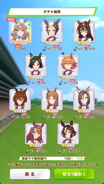 チケット10枚と100連で来てセーフ