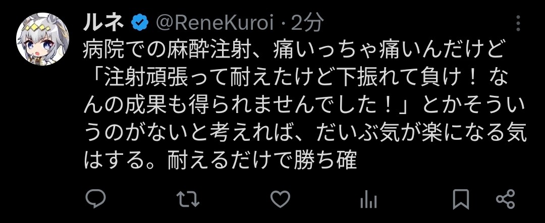 でも耐えるだけで勝ち確って実際チョロいよな。雑魚がみんな耐えてきた耐えてきた言うくらい耐えは誰でもできる