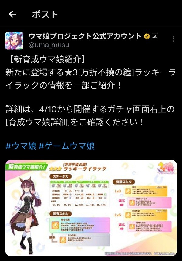 まーた短距離専用人権サポカ作ってるよ。人権とは……?